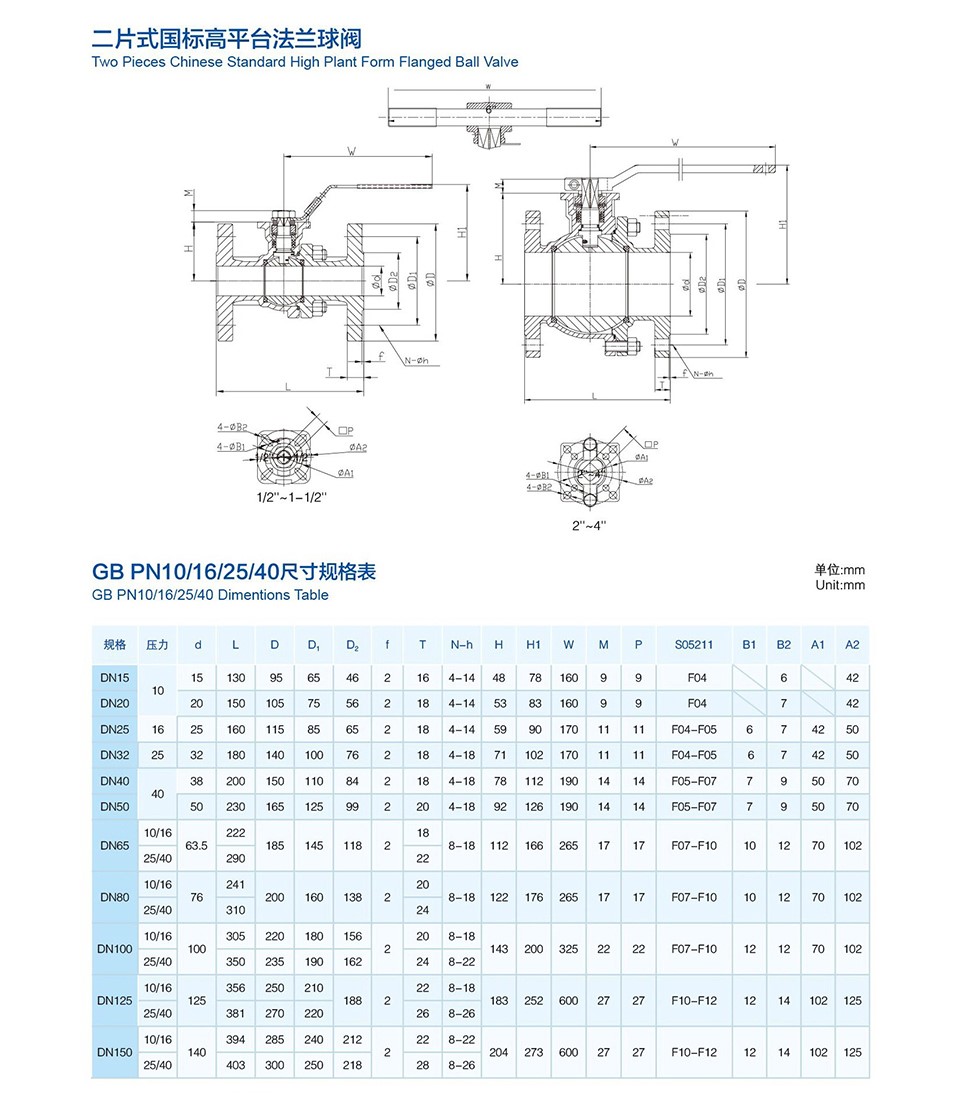 二片式國標高平臺法蘭球閥