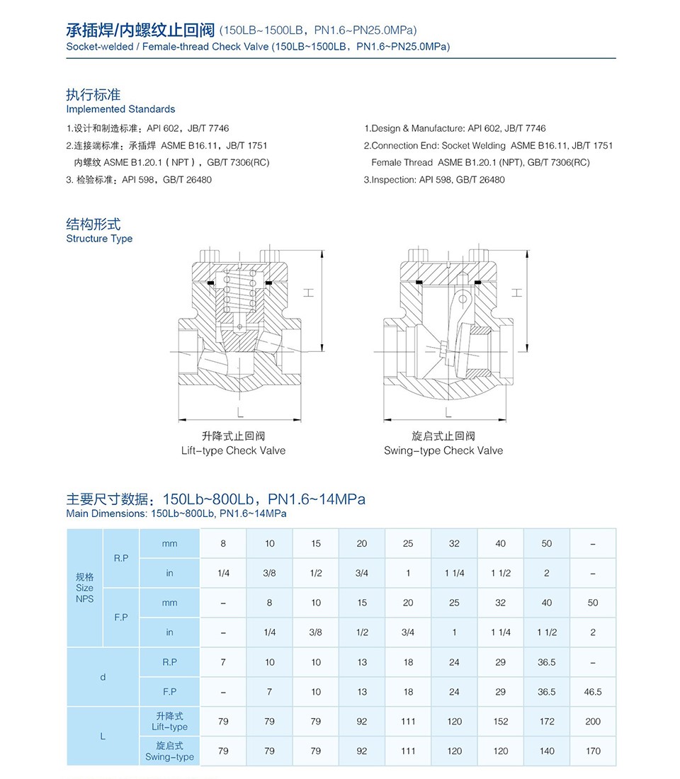 承插焊/內螺紋止回閥